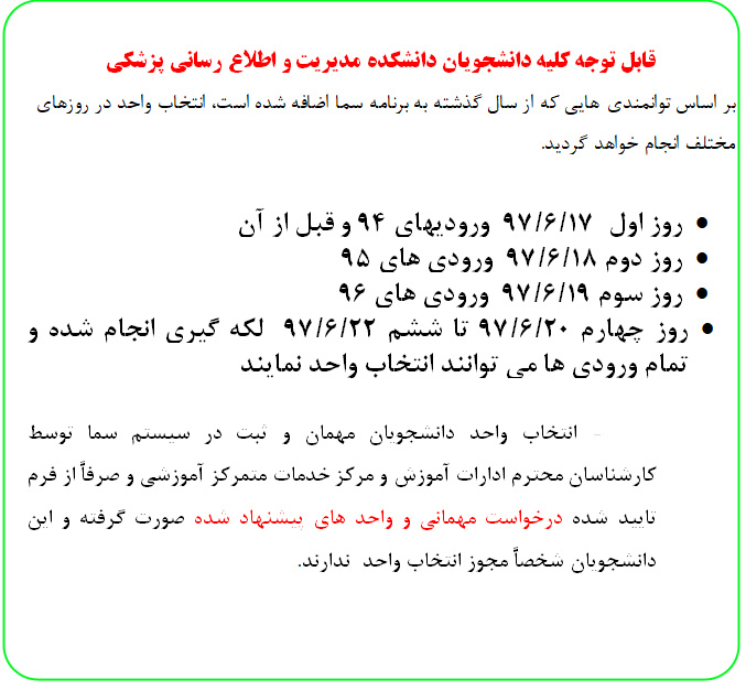 قابل توجه کلیه دانشجویان دانشکده مدیریت و اطلاع رسانی پزشکی..