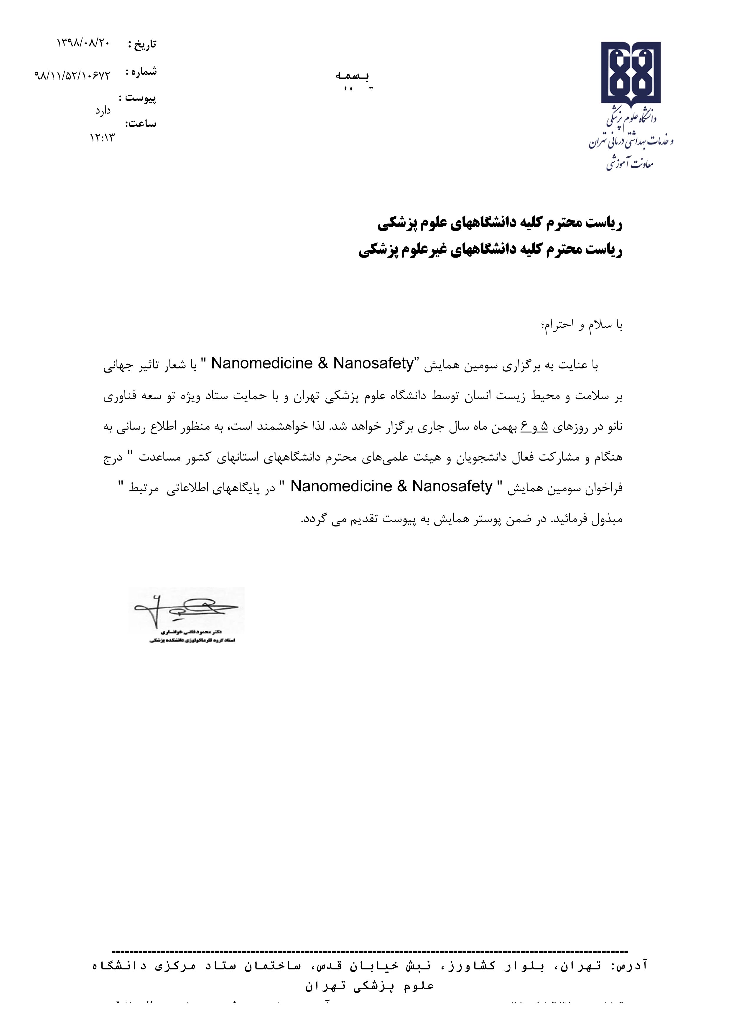 دعوت نامه سومین همایش نانو مدیسین با شعار تاثیر جهانی بر سلامت و محیط زیست انسان