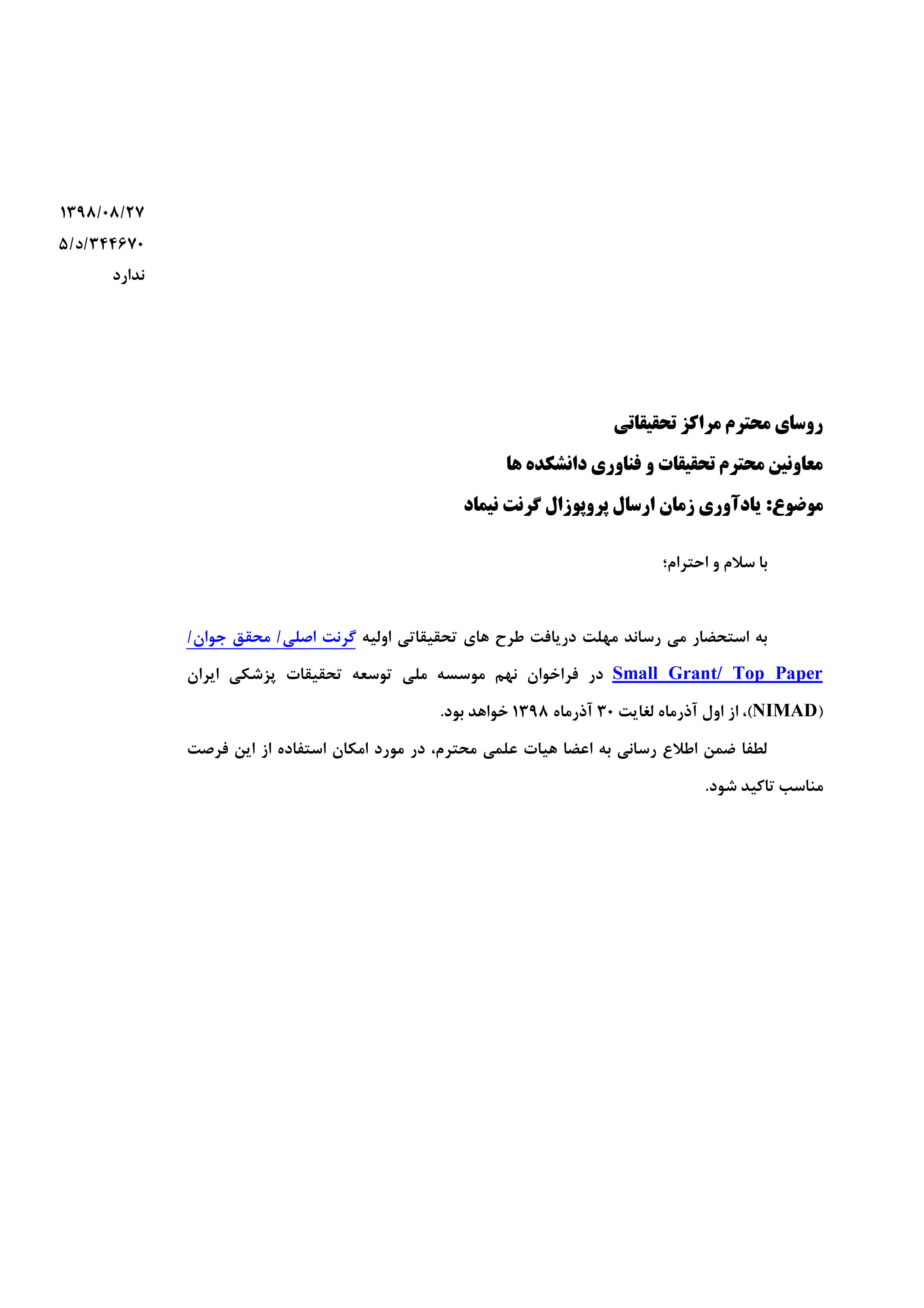یادآوری زمان ارسال پروپوزال گرنت نیماد