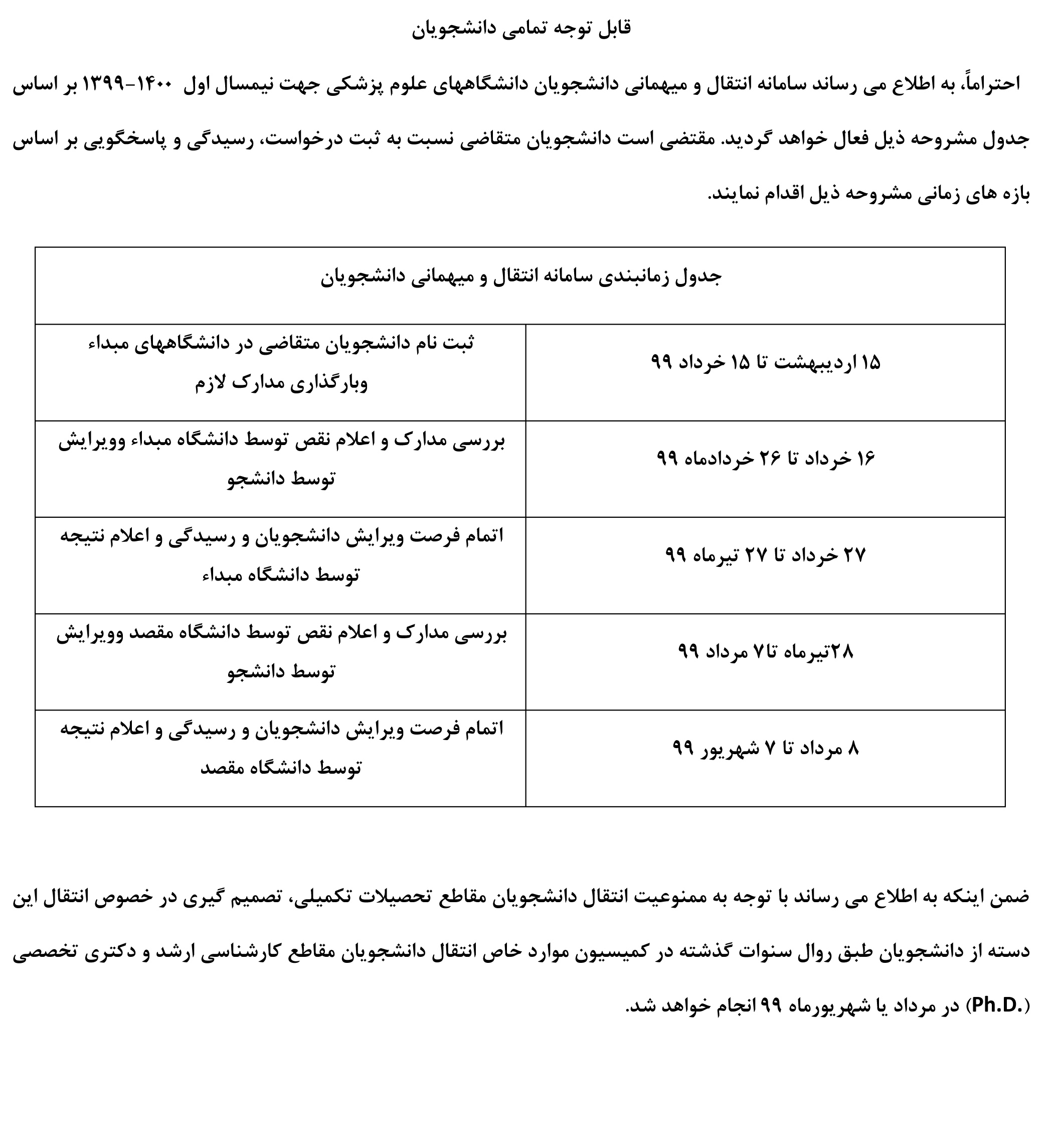 اطلاع رسانی زمانبندی سامانه انتقال و میهمانی دانشجویان