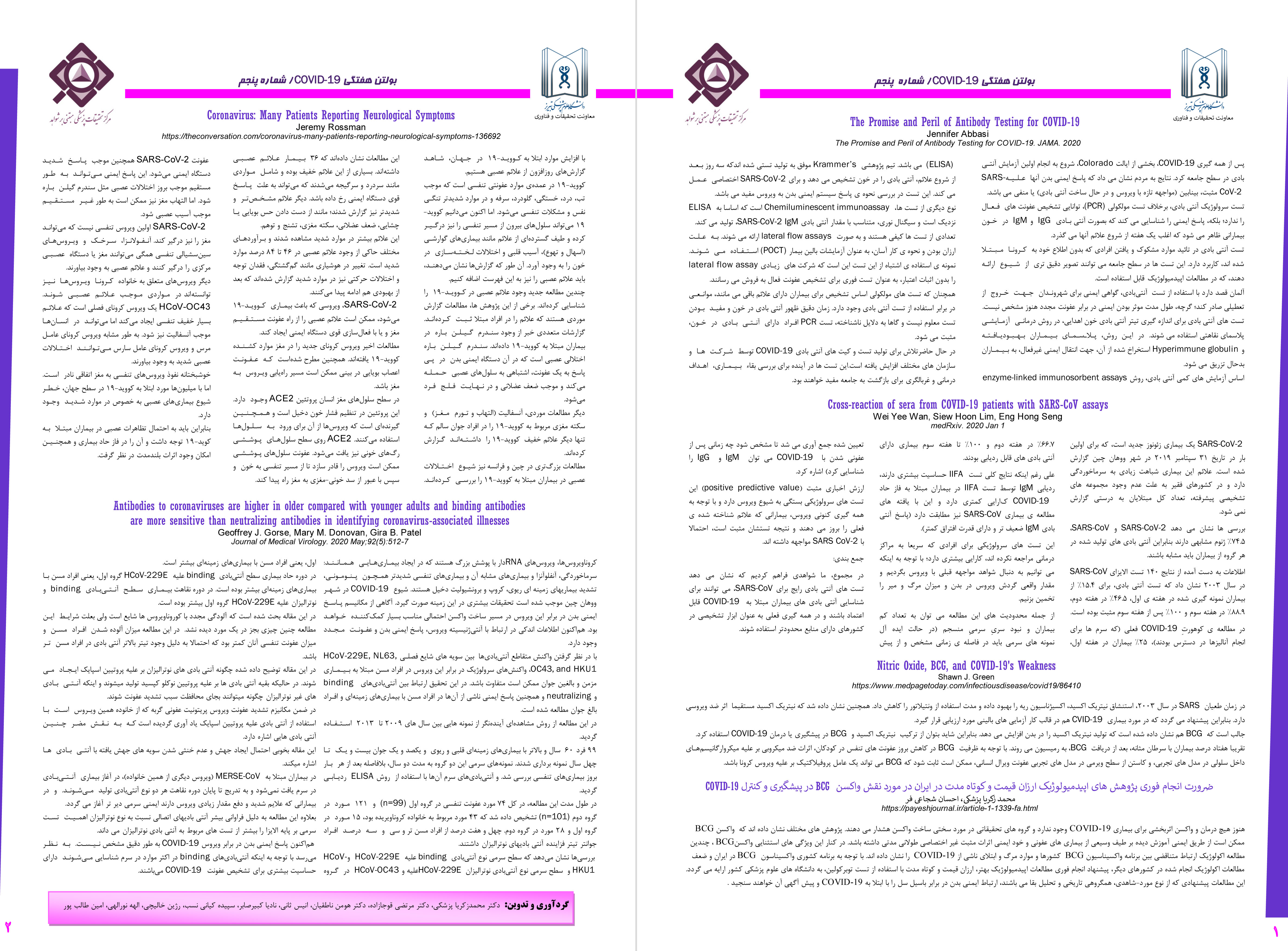 بولتن هفتگی COVID-19 معاونت تحقیقات وفناوری *شماره پنجم*