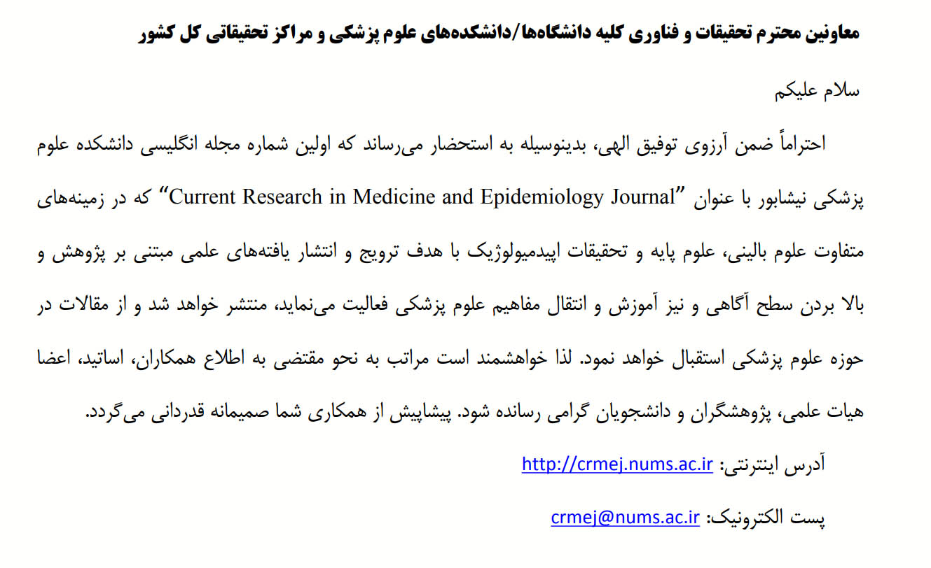 اولین شماره مجله انگلیسی دانشکده علوم پزشکی نیشابور ....