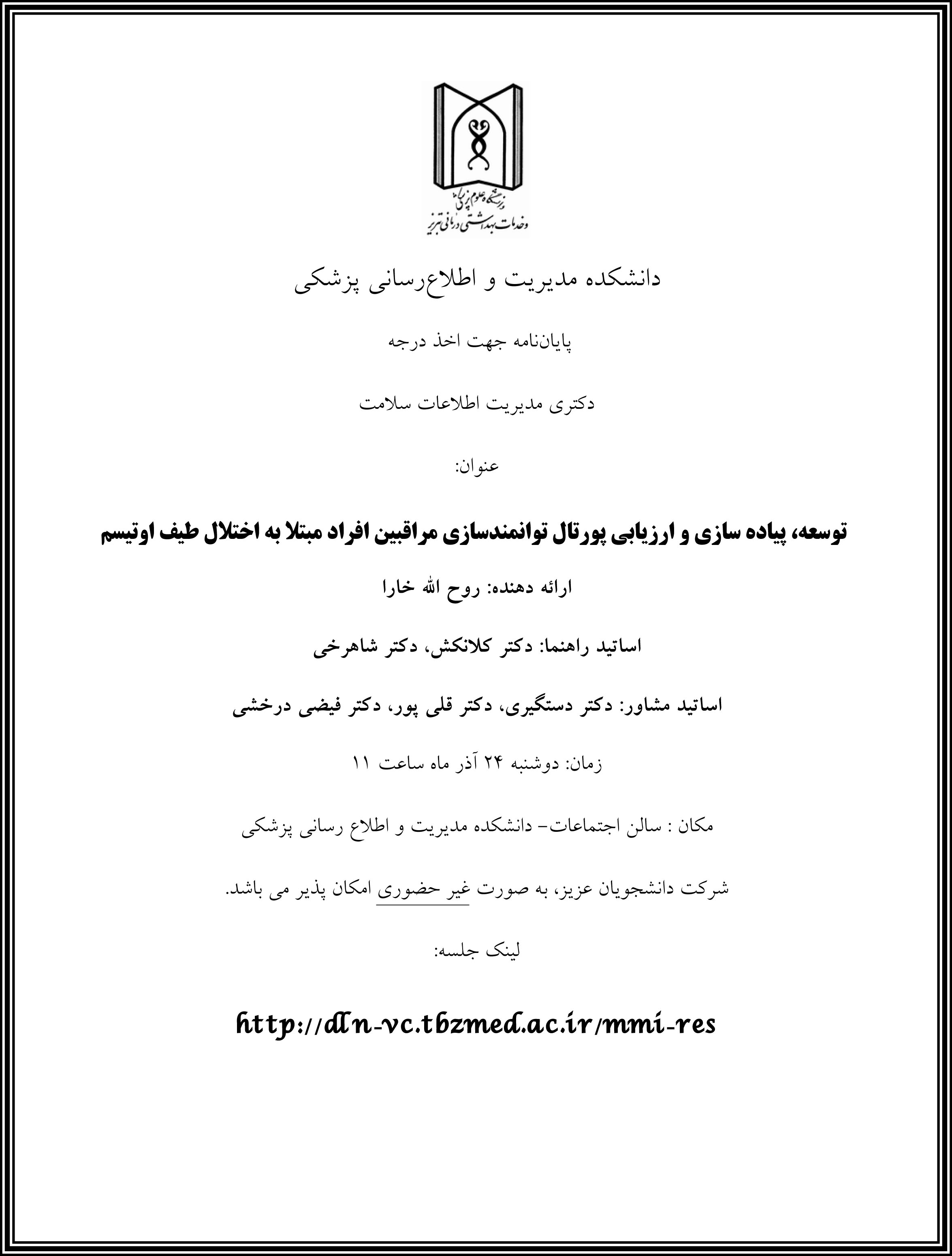 جلسه دفاع از پایاننامه جهت اخذ درجه دکتری مدیریت اطلاعات سلامت ( روح الله خارا)
