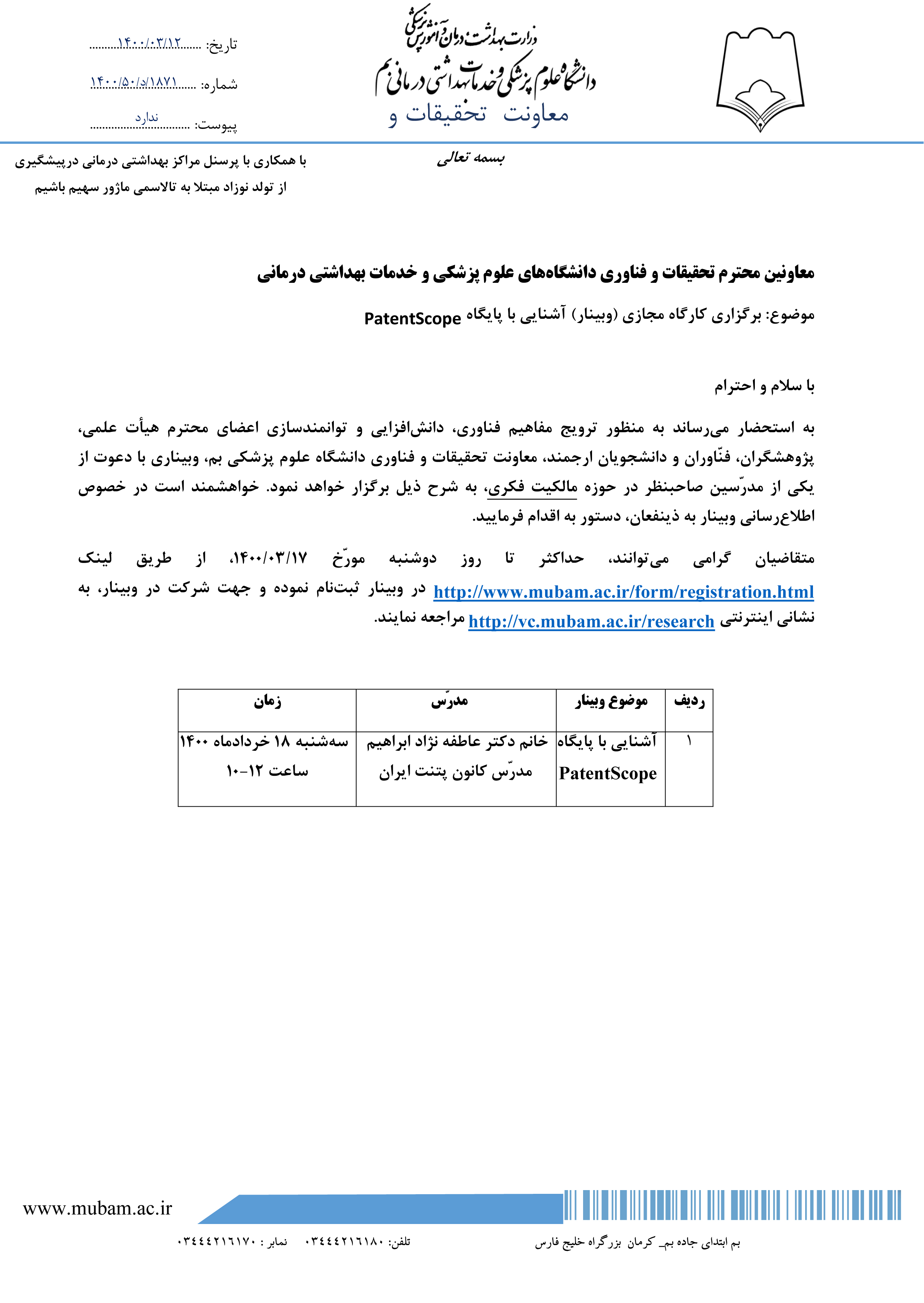 کارگاه مجازی (وبینار) آشنایی با پایگاه PatentScope