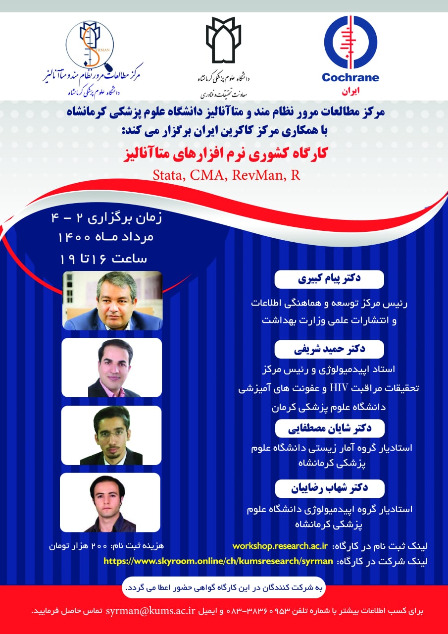 اطلاع رسانی کارگاه "نرم افزارهای متاآنالیز با همکاری کاکرین ایران"