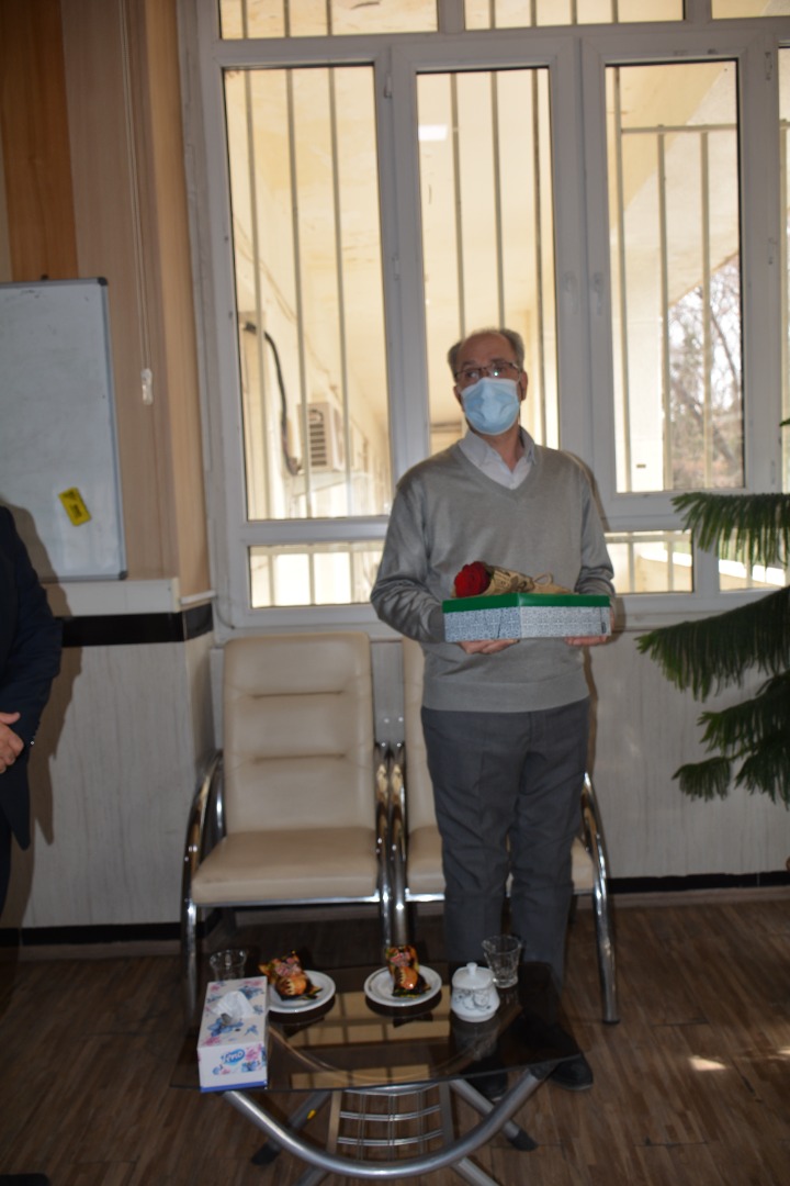 روز دوشنبه تاریخ 1400/12/16 به مناسبت میلاد باسعادت حضرت ابوالفضل (ع) و روز جانباز، به پاس گرامیداشت اعیاد شعبانیه و روز جانباز، ریاست محترم دانشکده، جناب آقای دکتر علیرضا محبوب اهری وامام جماعت محترم دانشکده حاج آقا معمار، از ایثارگرمحترم دانشکده ، جناب آقای محمدباقرامیرعطاری با اهدای شاخه گل و شیرینی تجلیل نمودند.