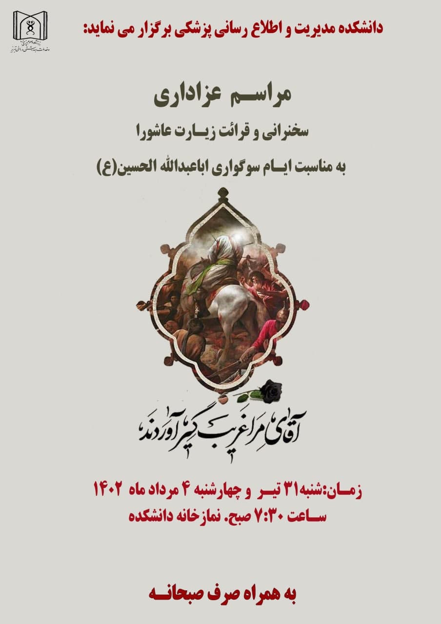 روزهای شنبه 31 تیر و چهارشنبه 4 مرداد ماه 1402، ساعت 7/30 صبح، به همراه صرف صبحانه، در نمازخانه دانشکده مدیریت و اطلاع رسانی پزشکی برگزار خواهد شد.