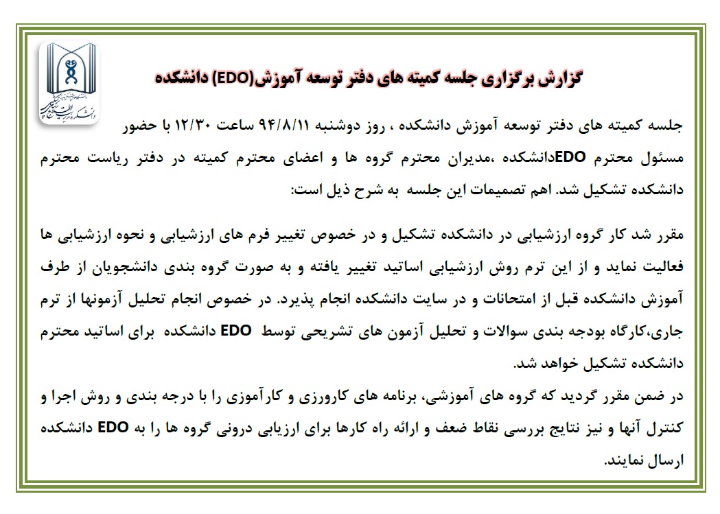 گزارش برگزاری جلسه کمیته های دفتر توسعه آموزش (EDO) دانشکده