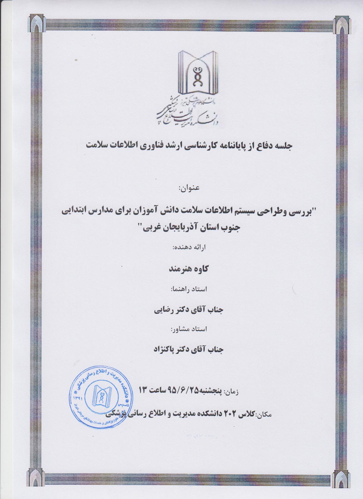 جلسه دفاع از پایان نامه کارشناسی ارشد فناوری اطلاعات سلامت ( کاوه هنرمند )