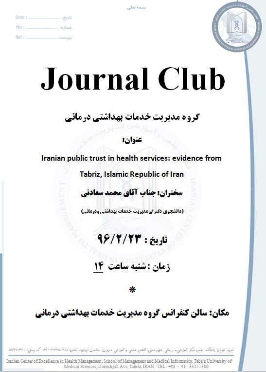 Iranian public trust in health services: evidence from Tabriz, Islamic Republic of Iran