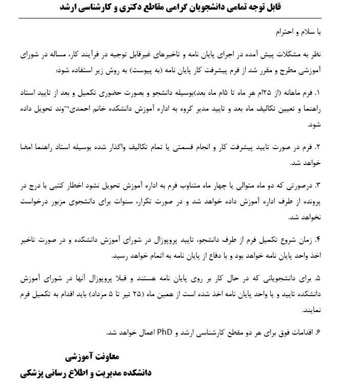 قابل توجه تمامی دانشجویان محترم مقاطع تحصیلی دکتری و کارشناسی ارشد