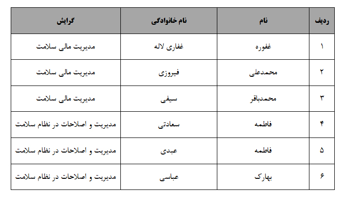 اسامی پذیرفته شدگان آزمون دوره مدیریت عالی بهداشت عمومی (MPH) درسالتحصیلی 97-96