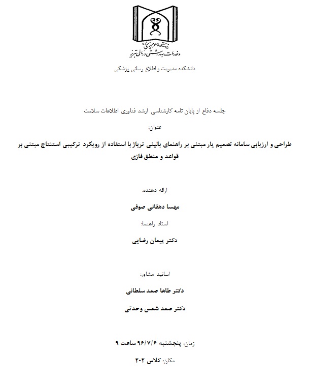 جلسه دفاع از پايان نامه کارشناسی ارشد فناوری اطلاعات سلامت ( مهسا دهقانی)